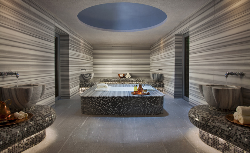 Equipment designed and installed by Barr + Wray includes; two saunas, three steam rooms, two ice fountains, two steam showers, a hammam, two scrub tables, two vitality pools, two onsen pools, several stainless steel attractions and four experience showers.